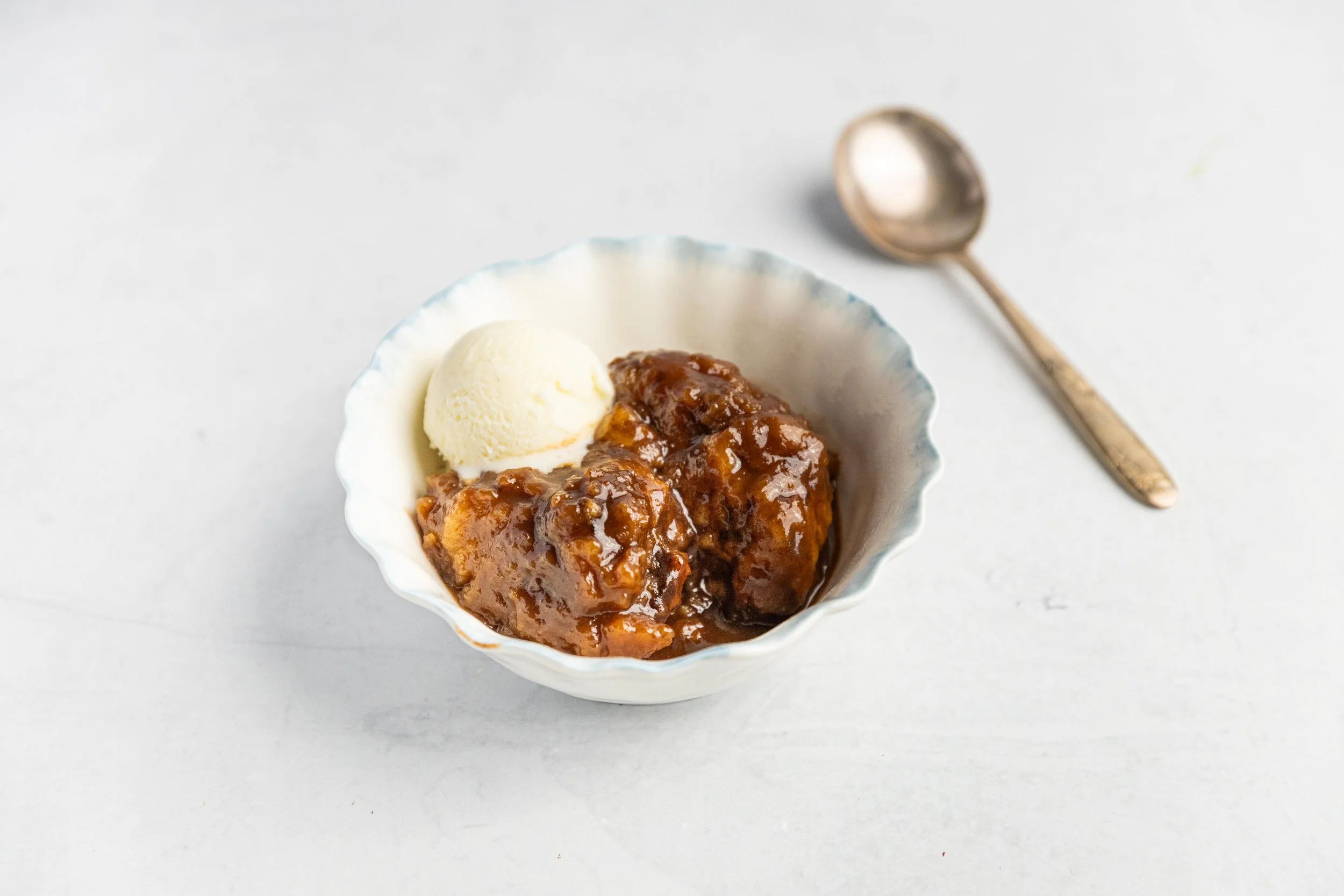 Serve warm in bowls with a big scoop of vanilla ice cream or a dollop of cream.