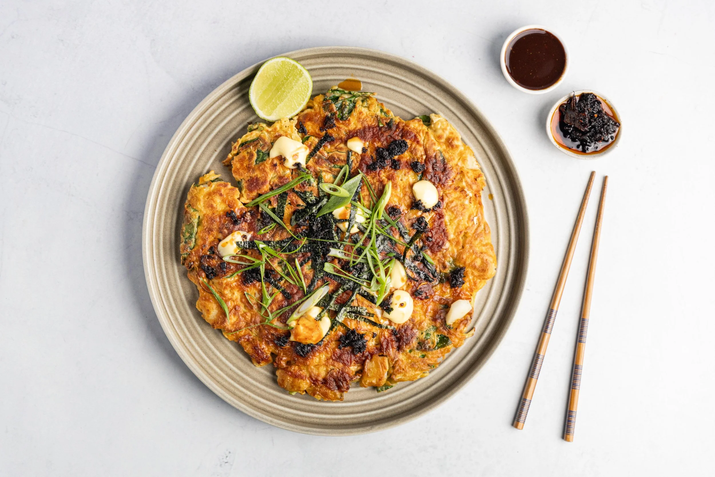Seafood Okonomiyaki with Crispy Chilli Oil